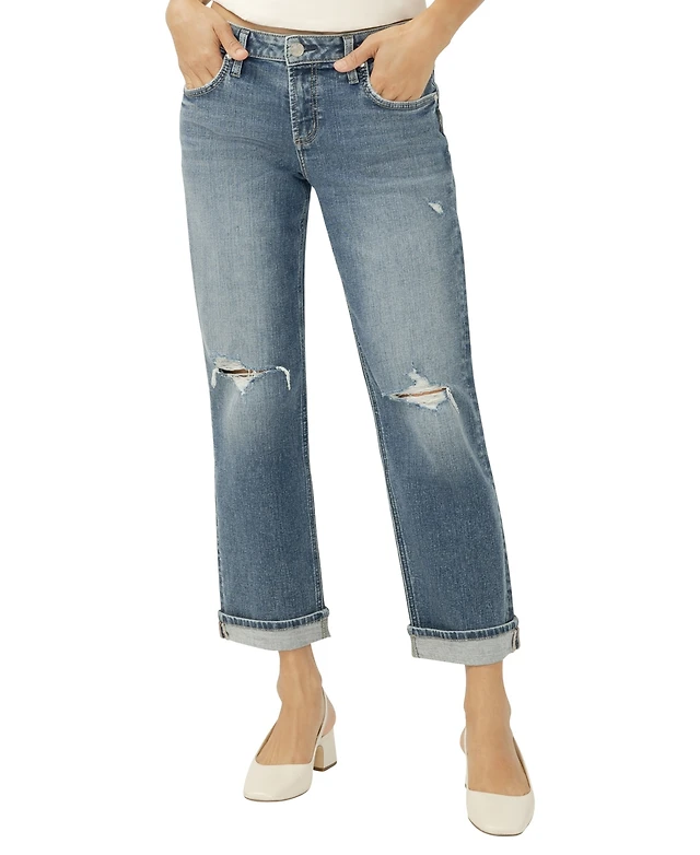 Silver Jeans Co. Women's Boyfriend Mid Rise Slim Leg