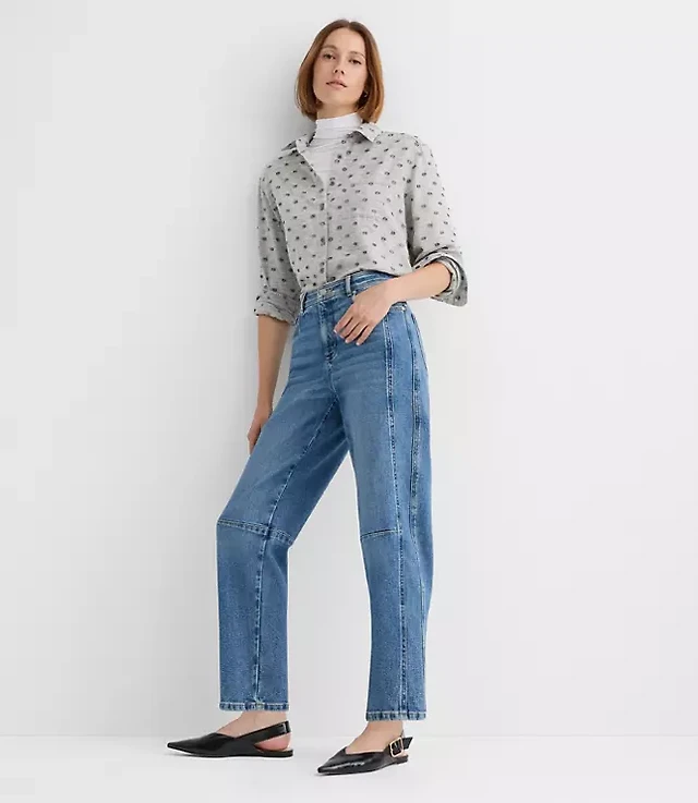 Petite High Rise Barrel Jeans Classic Mid Wash