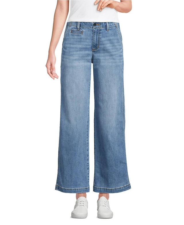 Lands' End Women's Plus Soft Denim Mid Rise Relaxed Straight Crop Jeans