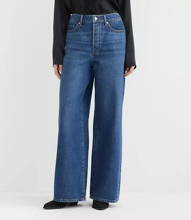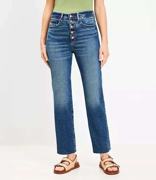 Tall Tab Waist High Rise Straight Jeans in Bright Mid Indigo Wash