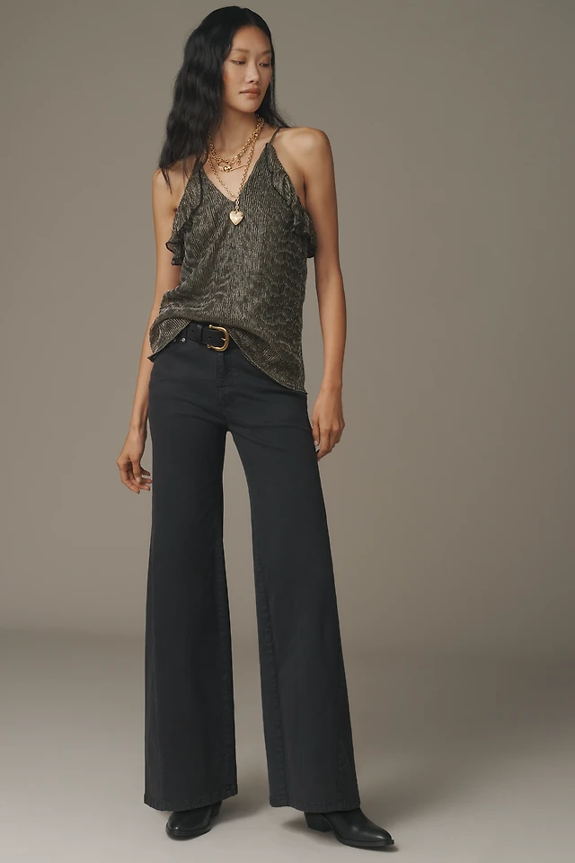 The Adi Sparkle Mid-Rise Flare Pants by Pilcro