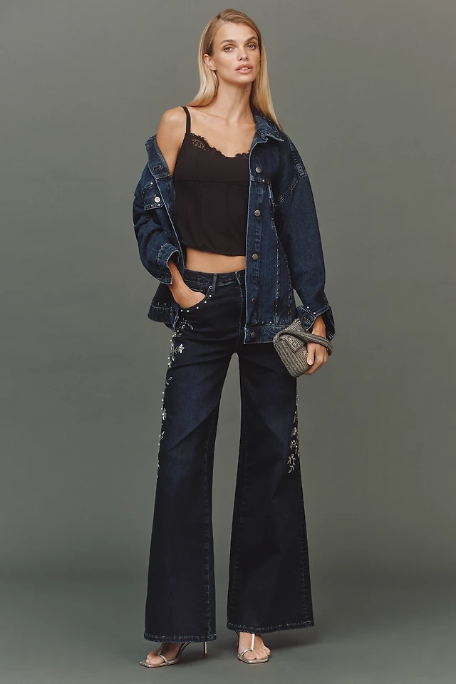 Edikted Carlie Embroidered Low Rise Wide Leg Jean