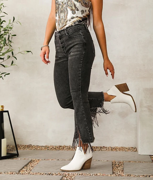 High Rise Horseshoe Snow Leopard Stretch Jean
