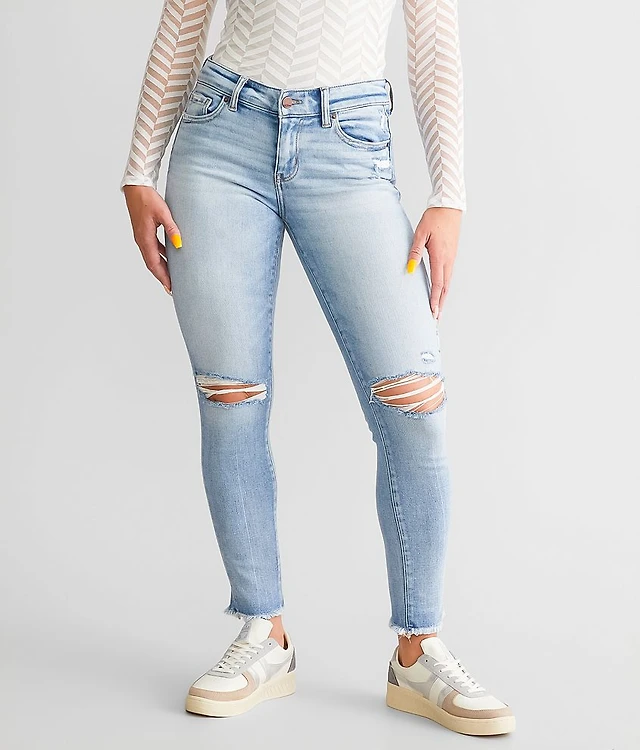 Pacsun Zoe Low Rise Girlfriend Jeans Ripped Exposed Button Medium Blue