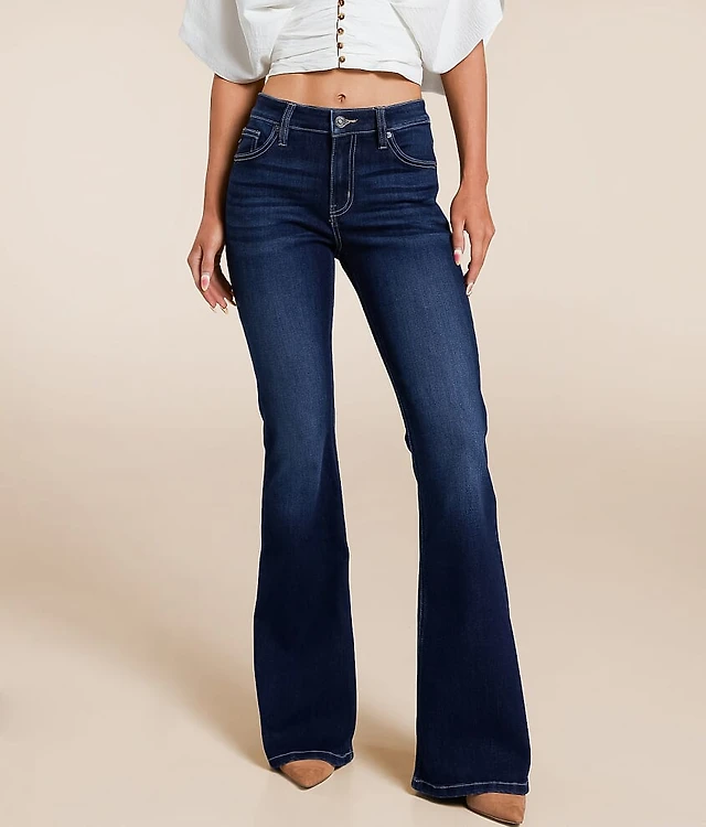 Empyre Glimmer Evening Dark Blue Wash Mid Rise Flare Jeans