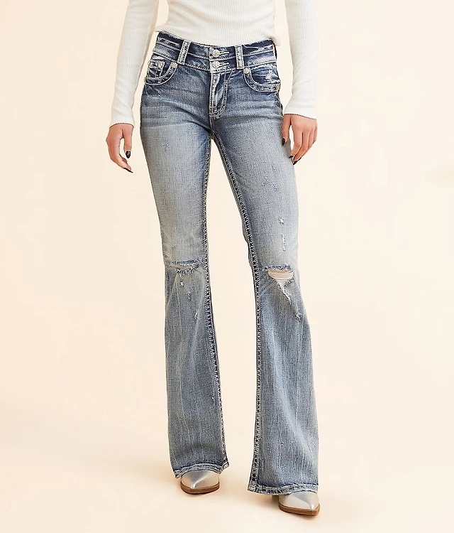 Empyre Glimmer Blossom Light Blue Wash Mid Rise Flare Jeans