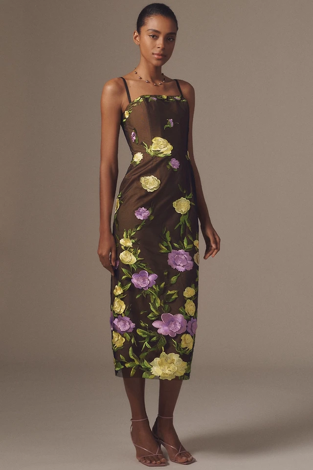 Lara Women's Beaded Midi Dress with Long Sleeves