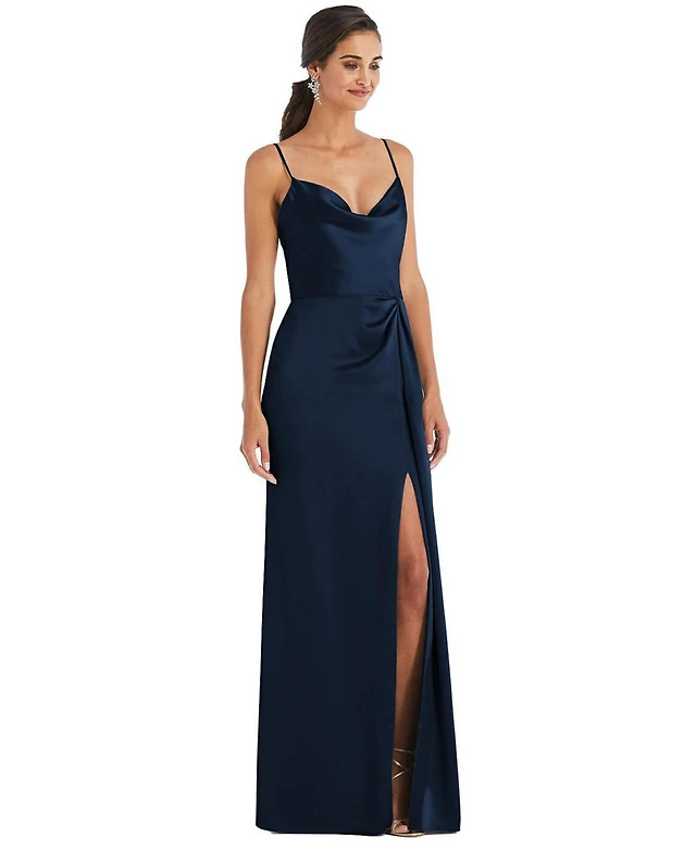 Jersey-Knit Ruched Midi Dress with Asymmetric Hem