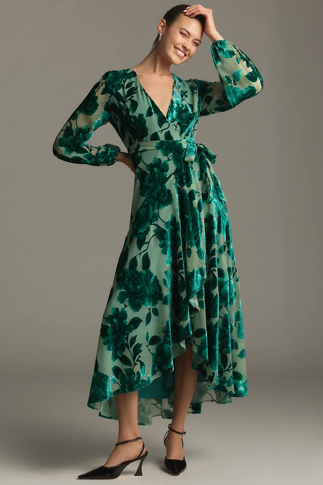 Yumi Women's Velvet Wrap V-Neck Midi Dress