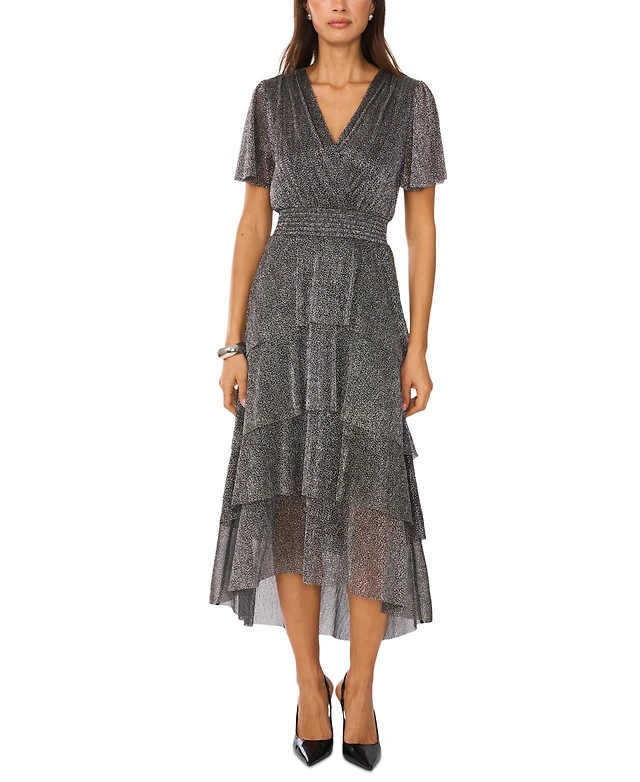 Vince Camuto Plus Cotton Belted Tiered Sleeveless Midi Dress