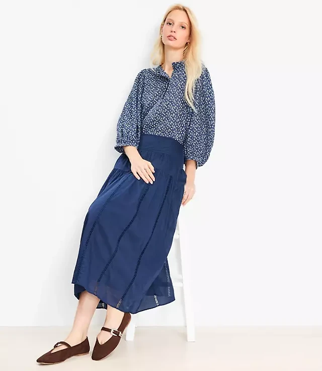 Maeve Godet Flare Midi Skirt