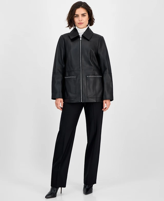 Dkny Women's Woven Patch Oversized Full Zip Jacket Hoodie