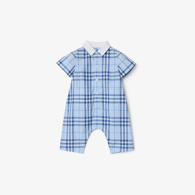 Check Cotton Playsuit in Ice blue - Children | Burberry® Official