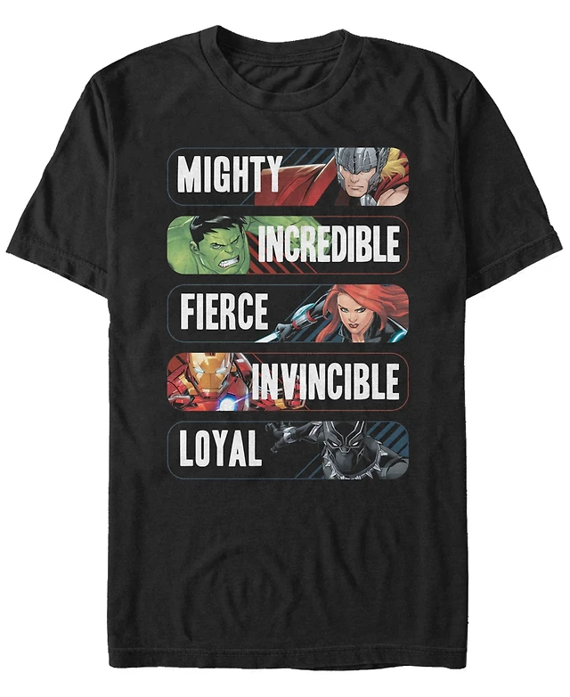 Marvel Men's Avengers Adjectives Mighty Incredible Fierce Invincible Loyal, Short Sleeve T-Shirt