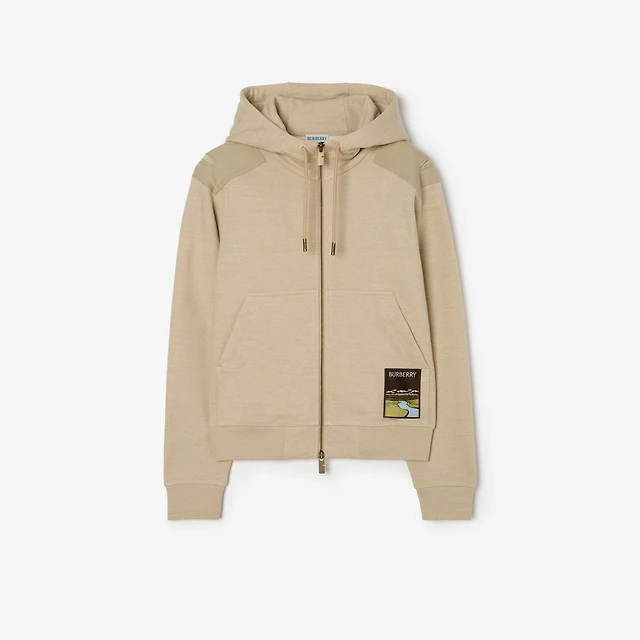 Landscape Label Cotton Zip Hoodie in Dune beige melange - Women | Burberry® Official