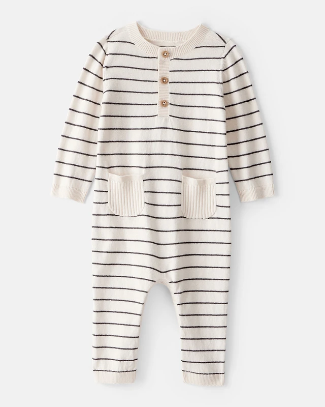 Baby Boy Canvas Long-Sleeve Jumpsuit - Brown