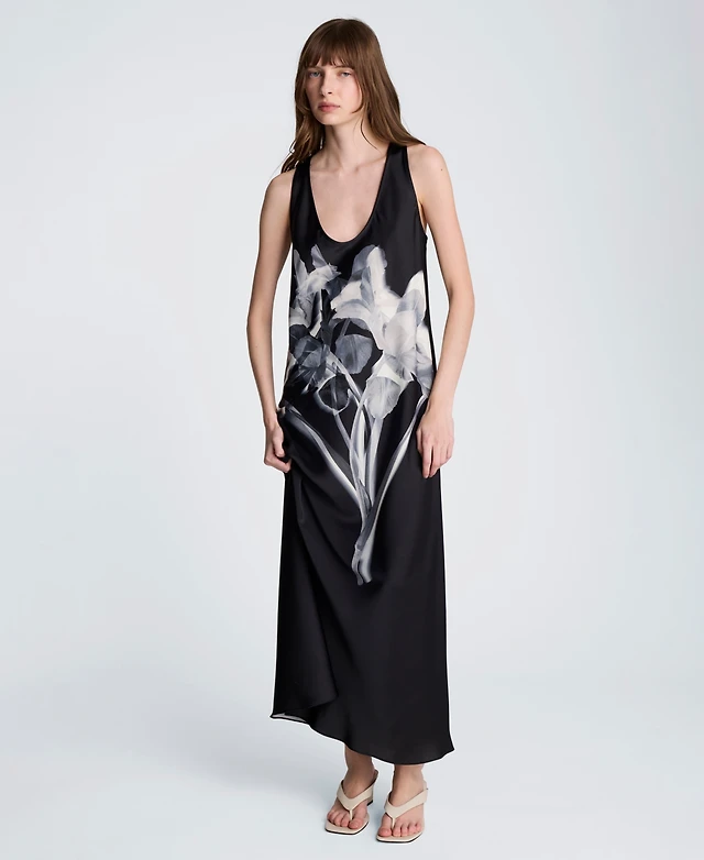 Vince Camuto Womens Printed Tie Neck Puff Sleeve Maxi Dress
