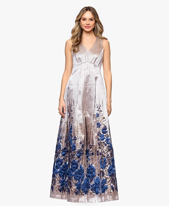 R & M Richards Plus Long Floral Embroidered Dress