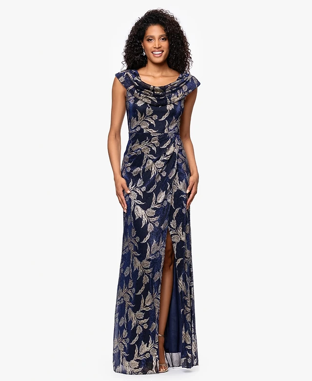 After Six Plus V-Neck Split Sleeve Blouson Bodice Maxi Dress