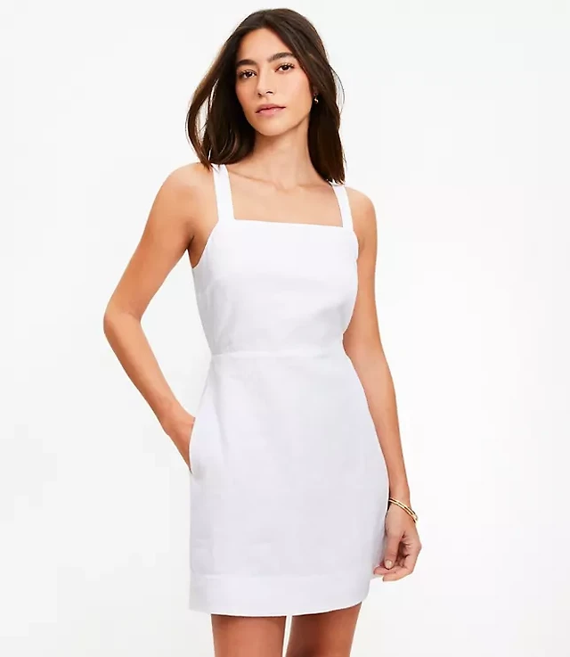 Ann Taylor The Petite Elbow Sleeve Square Neck Dress Seasonless Stretch