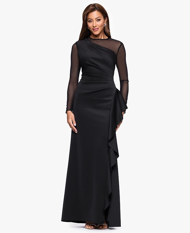Xscape Women's 3/4-Sleeve Ruffle Long Dress