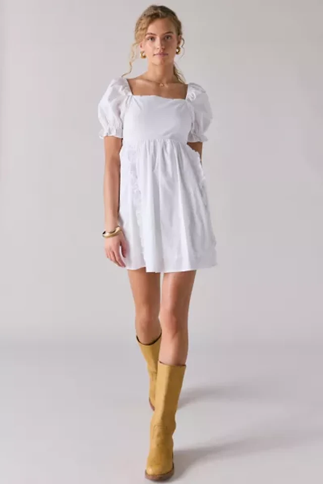 Good American Women's Plunge Neck Crochet Mini Dress, Regular and Plus