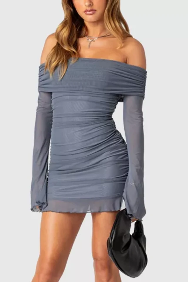 Edikted Off Shoulder Gathered Mini Dress