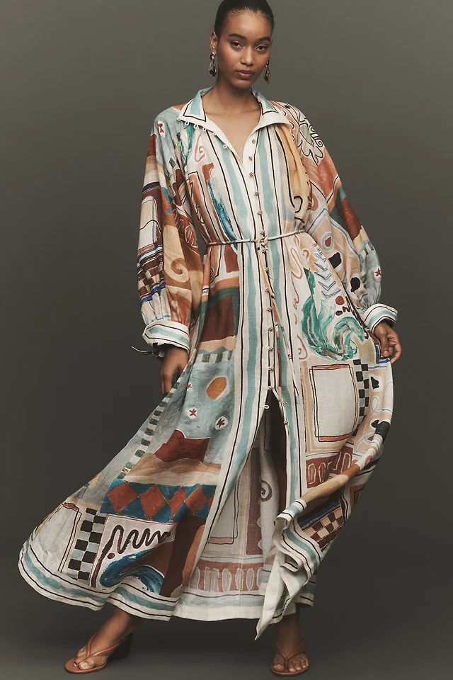 ALÉMAIS Michelle Long-Sleeve Linen Shirtdress