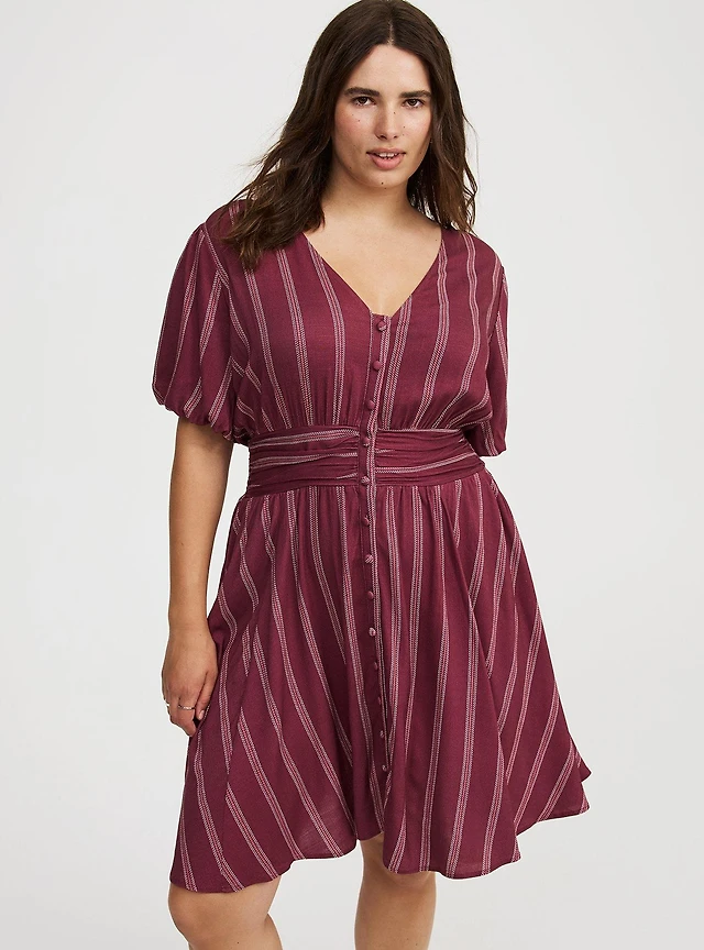 Bubble-Sleeve Button-Up Mini Dress