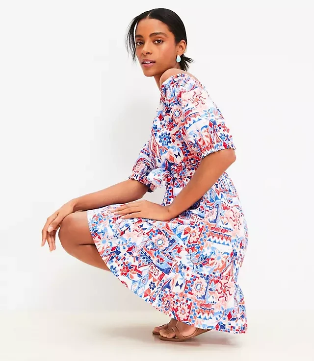 Square Neck Tie Strap Smocked Mini Fit and Flare Dress