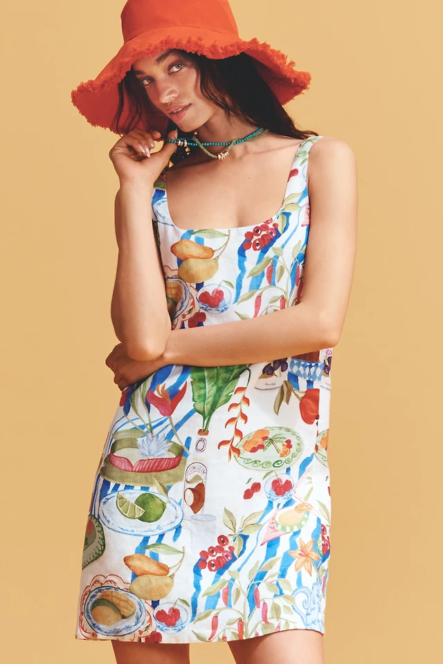 Farm Rio Fresh Table Linen Sleeveless Scoop-Neck Mini Dress