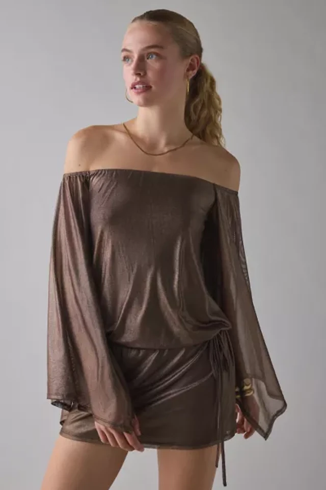 AFRM Peck Gold Halo Dot Mesh Off-The-Shoulder Bodycon Mini Dress