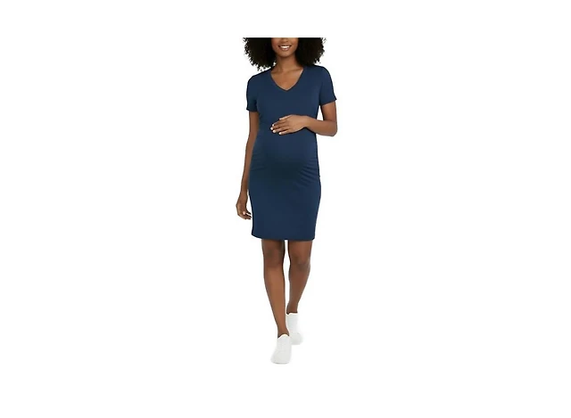 Motherhood Maternity Crew Neck Rib Knit Long Sleeve Mini Dress