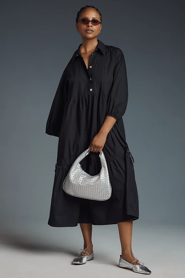 The Bettina Embellished Tiered Shirt Dress by Maeve