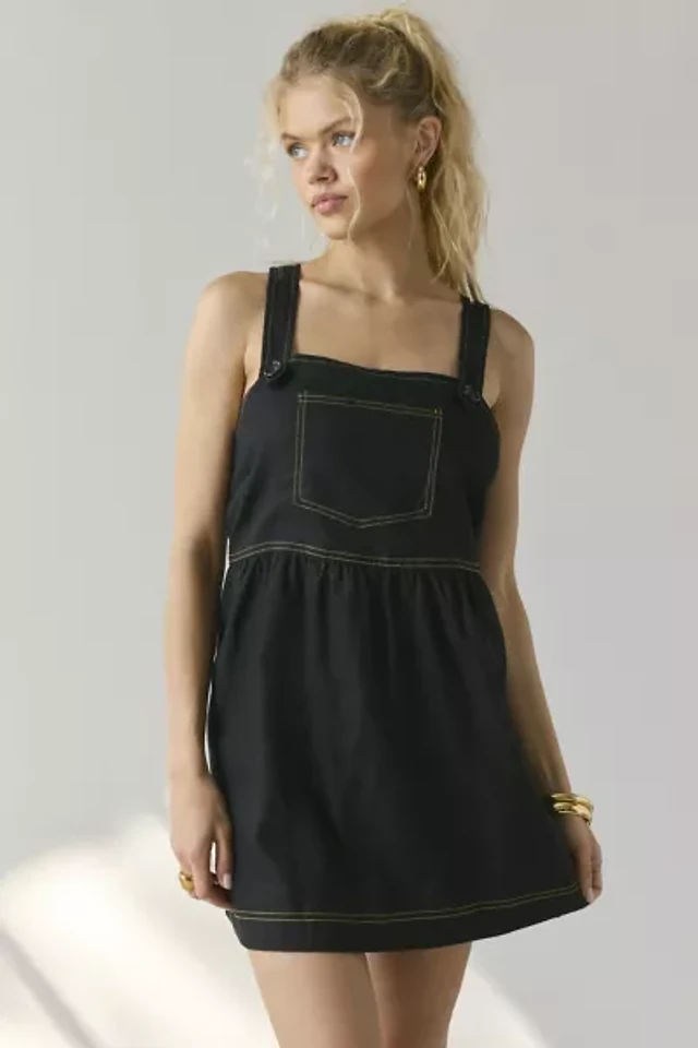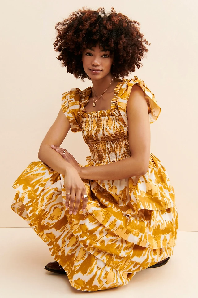Hope & Henry Big Girls Pleated Flutter Sleeve Apron Dress with Embroidery