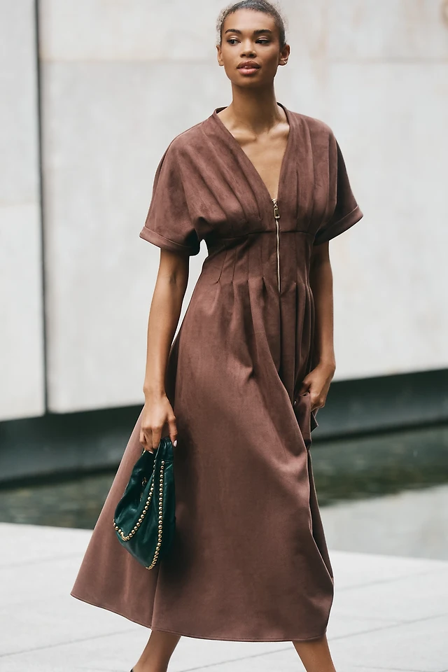 BELTED CREPE MIDI DRESS