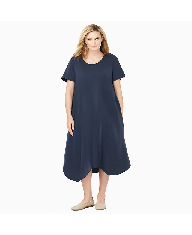 Woman Within Plus Short-Sleeve Seersucker Dress