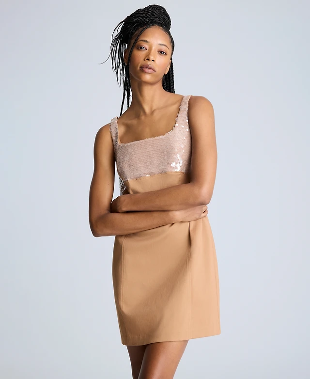 Anne Klein Women's Sleeveless Mixed-Media Midi Dress