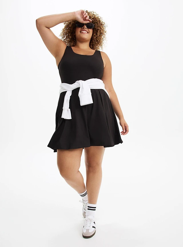 Unique Vintage Plus Square Neck Pleated Swing Dress