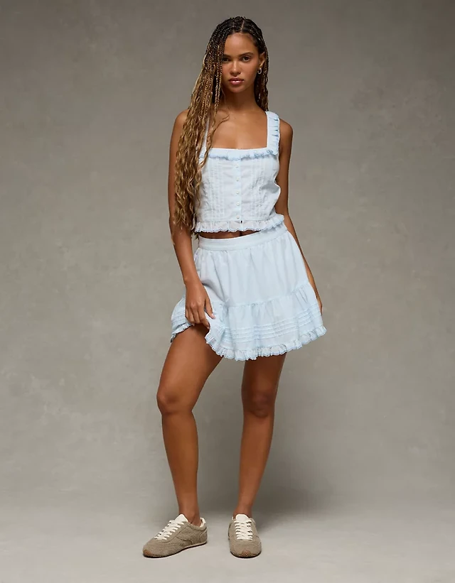 Pacsun Eco Light Indigo Mid Rise Pleated Denim Mini Skirt