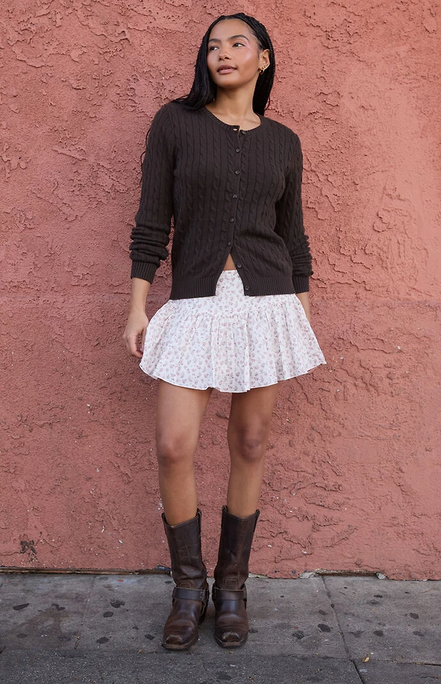 John Galt White & Blue Floral Izzy Tiered Mini Skirt