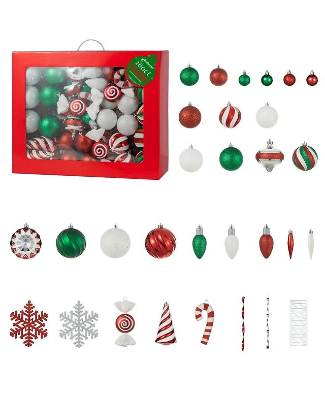 Glitzhome 160ct Christmas Whimsical Red Green Deluxe Boxed Shatterproof Ornaments