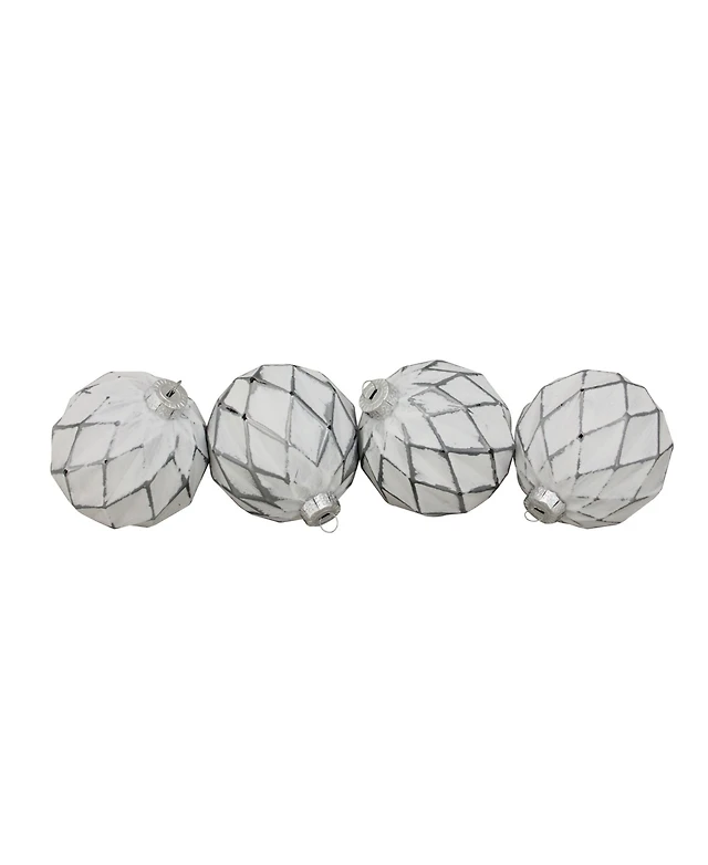 Northlight 4ct White and Gray Diamond Pattern Christmas Glass Ball Ornaments 4" 100mm