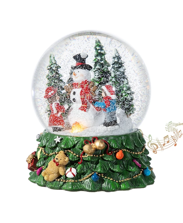 Glitzhome 150mm Lighted Resin Christmas Musical Snowflakes Snowman Water Globe