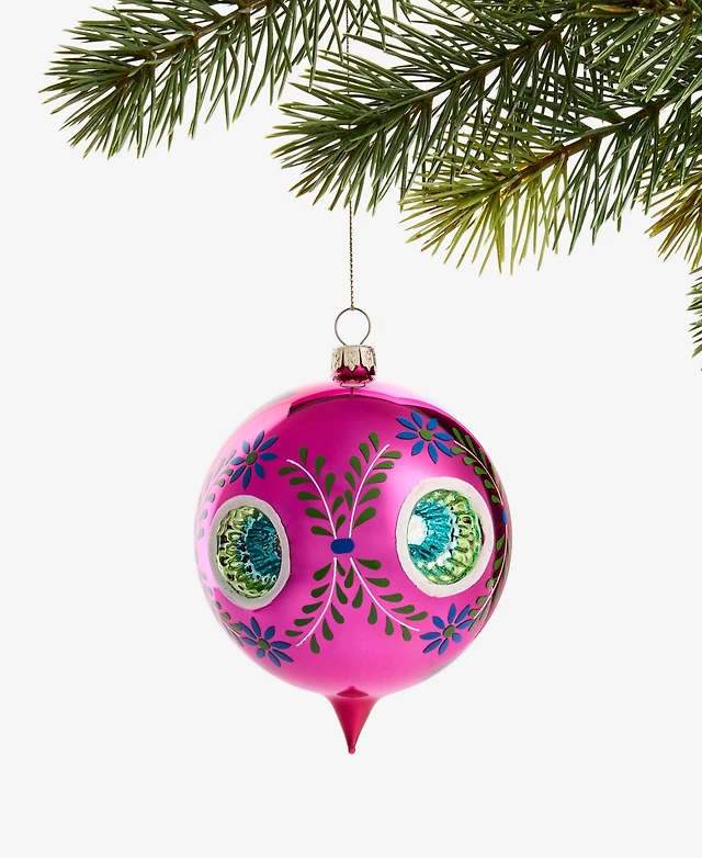 Holiday Lane Berry Tones Pink and Gold Floral Ball Ornament, Macy's Exclusive