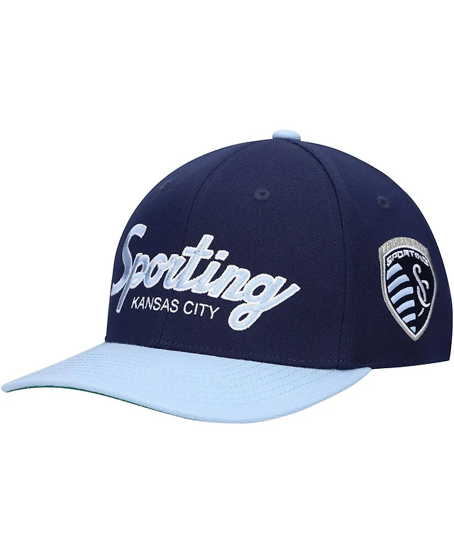 Men's Mitchell & Ness Navy Sporting Kansas City Team Script 2.0 Stretch Snapback Hat