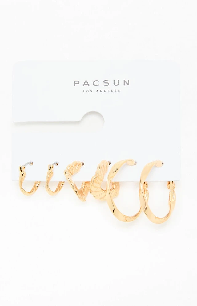 LA Hearts 3 Pack Chunky Gold Hoop Earrings