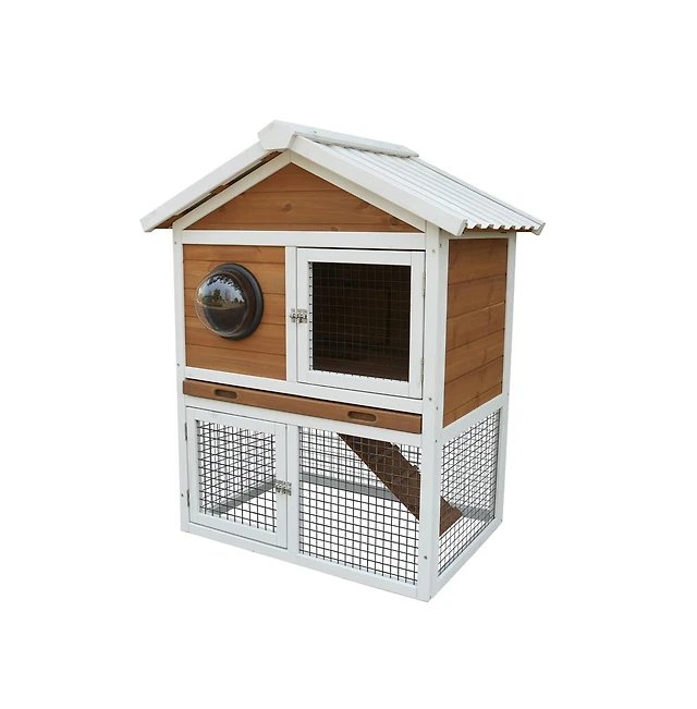 58" Rabbit Hutch, Wooden Bunny Hutch, Guinea Pig Cage, Small Animal Enclosure with Run Area, Removable Tray, Asphalt Roof, Lockable Doors and Ram