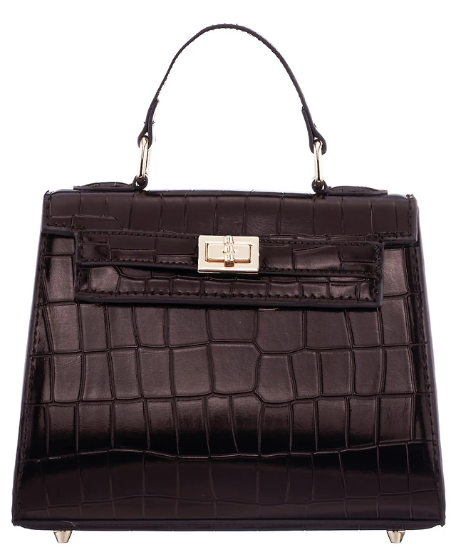 Nina Mini Croco Embossed Magnetic Snap Satchel Bag
