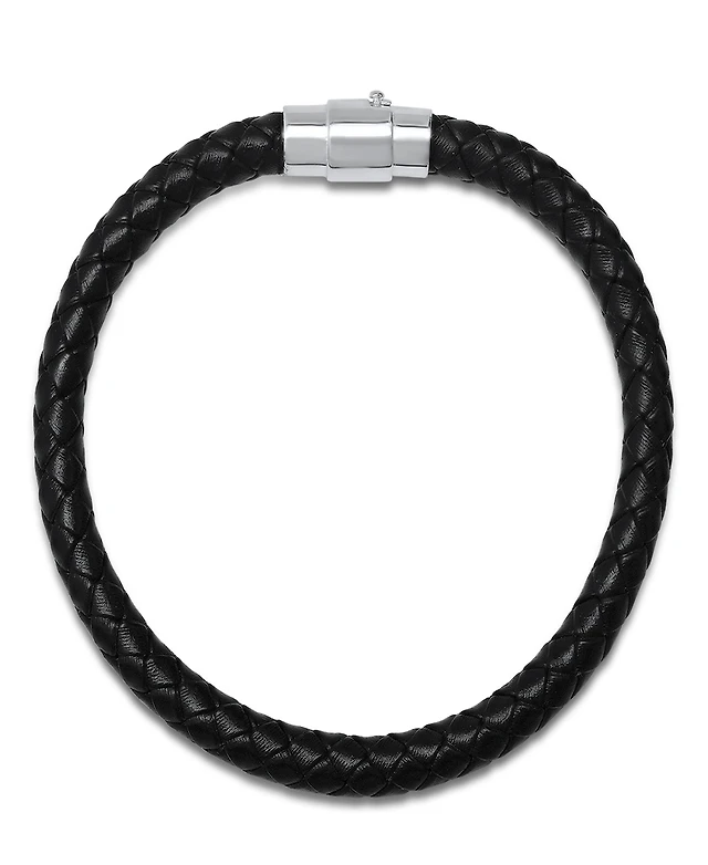Steeltime Men's Braided Leather and Sterling Silver Magnetic Clasp Bracelet.